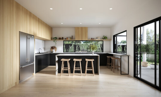 "The Queen (battleaxe)" offers a unique layout that doesn't compromise on space or features for either unit. This design makes the most of its battleaxe style to deliver equally spacious dwellings complete with all the amenities.
